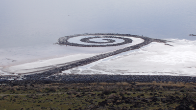 Spiral Jetty by Robert Smithson from atop Rozel Point, in mid-April 2005