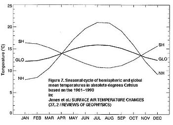The cycle of seasons in the polar and temperate zones of one hemisphere is opposite to that in the other. When it is summer in the Northern Hemisphere, it is winter in the Southern Hemisphere, and vice versa.