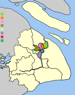 - Pudong New District (浦东新区 Pǔdōng Xīn Qū) – Chuansha County until 1992, merged with Nanhui District in 2009