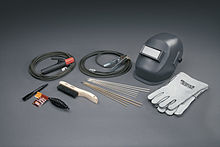 Shielded metal arc welding equipment typically consists of a constant current welding power supply and an electrode, with an electrode holder, a ground clamp, and welding cables (also known as welding leads) connecting the two.