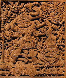 Syncretic forces produced stories in which the two deities were shown in cooperative relationships and combined forms. Harihara is the name of a combined deity form of both Vishnu ( Hari) and Shiva (Hara). This dual form, which is also called Harirudra, is mentioned in the Mahabharata. An example of a collaboration story is one given to explain Shiva's epithet Mahābaleśvara, "lord of great strength" (Maha = "great", Bala = "strength", Īśvara = "lord"). This name refers to a story in which Rāvaṇa was given a linga as a boon by Shiva on the condition that he carry it always. During his travels, he stopped near the present Gokarna, India in Karnataka to purify himself and asked Ganesha, a son of Parvathi in the guise of a young Brahmin, to hold the linga for him, but after some time, Ganesha put it down on the ground and vanished. When Ravana returned, he could not move the linga, and it is said to remain there ever since.