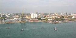Southampton has always been a maritime centre, and the docks have long been a major employer in the city. In particular, it is a port for cruise ships; its heyday was the first half of the 20th century, and in particular the inter-war years, when it handled almost half the passenger traffic of the UK. Today it remains home to luxury cruise ships, as well as being the largest freight port on the Channel coast and fourth largest UK port by tonnage, with several container terminals. Unlike some other ports, such as Liverpool, London, and Bristol, where industry and docks have largely moved out of the city centres leaving room for redevelopment, Southampton retains much of its inner-city industry. Part of the docks has been redeveloped and the Ocean Village development—a local marina and entertainment complex—built. Southampton is home to the headquarters of both the Maritime and Coastguard Agency and the Marine Accident Investigation Branch of the Department for Transport.