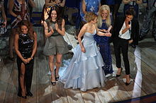 ![]() The Spice Girls performing during their penultimate reunion concert in Toronto, Ontario, in February 2008. (L–R) Chisholm, Beckham, Halliwell, Brown, Bunton. |