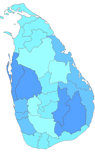 | 8 | Vavuniya | Northern | 99,653 | 18 | Ratnapura | Sabaragamuwa | 52,170 | ||||
