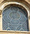 Exterior of a window at Sé Velha de Coimbra, Portugal, showing a modern steel armature