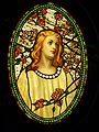 Mid 20th-c. window showing a continuation of ancient and 19th-c. methods applied to a modern historical subject. Florence Nightingale window at St Peters, Derby, removed from the Derbyshire Royal Infirmary