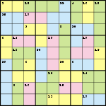 Duidoku is a two player variant of Sudoku. It is played on a 4×4 board (i.e. 16 squares or four clusters each containing four squares).