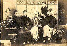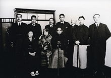 Sun (seated, right) and his wife Soong Ching-ling (宋慶齡) (seated, centre) in Kobe, Japan in 1924