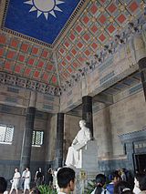 Statue in the Mausoleum, Kuomintang flag on the ceiling