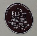 - In 1967, on the second anniversary of his death, Eliot was commemorated by the installation of a large stone in the floor of Poets' Corner in London's Westminster Abbey. The stone, cut by designer Reynolds Stone, is inscribed with his life dates, his Order of Merit, and a quotation from his poem " Little Gidding", "the communication / of the dead is tongued with fire beyond / the language of the living."