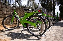 In April 2011, Tel Aviv municipality launched Tel-O-Fun, a bicycle sharing system, in which 150 stations of bicycles for rent were installed within the city limits. As of October 2011, there are 125 active stations, providing more than 1,000 bicycles. As of April 2011 the municipality has completed construction of about 100 kilometers of bicycle paths.