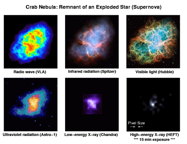Different types of telescope, operating in different wavelength bands, provide different information about the same object. Together they provide a more comprehensive understanding.