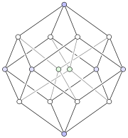 - 4-dimensional: Two parallel cubes ABCDEFGH and IJKLMNOP can be connected to become a hypercube, with the corners marked as ABCDEFGHIJKLMNOP.
