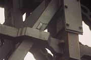 Being the first of its kind, the construction had no precedent; the method chosen to create the structure was therefore based on carpentry. Each member of the frame was cast separately, and fastenings followed those used in woodworking, such as the mortise and tenon and blind dovetail joints. Bolts were used to fasten the half-ribs together at the crown of the arch. Very large parts were needed to create a structure to span 100 feet rising to 60 feet above the river. The largest parts were the half-ribs, each about 70 ft long and weighing 5.25 tons. The bridge comprises more than 800 castings of 12 basic types.