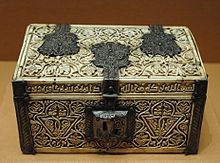 The Islamic art collection, the museum's newest, spans "thirteen centuries and three continents". These exhibits, comprising ceramics, glass, metalware, wood, ivory, carpet, textiles, and miniatures, include more than 5,000 works and 1,000 shards. Originally part of the decorative arts department, the holdings became separate in 2003. Among the works are the Pyxide d'al-Mughira, a 10th century ivory box from Andalusia; the Baptistery of Saint-Louis, an engraved brass basin from the 13th or 14th century Mamluk period; and the 10th century Shroud of Saint-Josse from Iran. The collection contains three pages of the Shahnameh, an epic book of poems by Ferdowsi in Persian, and a Syrian metalwork named the Barberini Vase.