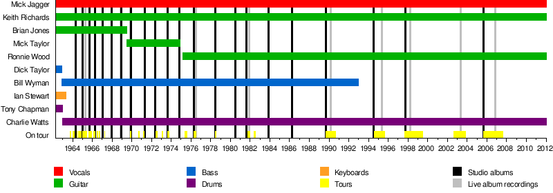 | Past members | Brian Jones Ian Stewart Bill Wyman Mick Taylor Dick Taylor Tony Chapman |