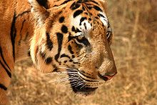 | A Bengal tiger (P. tigris tigris) in India's Bandhavgarh National Park | |
