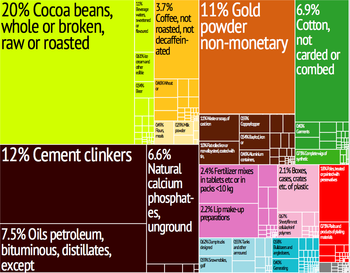 Graphical depiction of Togo's product exports in 28 colour-coded categories.