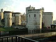 Her Majesty's Royal Palace and Fortress, more commonly known as the Tower of London (and historically as The Tower), is a historic monument in central London, England, on the north bank of the River Thames. It is located within the London Borough of Tower Hamlets and is separated from the eastern edge of the City of London by the open space known as Tower Hill.