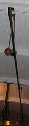 The troller design frequently fell off the wires, and was soon replaced by the more reliable trolley pole. This newer device was fitted to the top of the car, and was spring-loaded in order to keep a small trolley wheel or alternately, a grooved lubricated "skate" mounted at the top of the pole, firmly in contact with the underside of the overhead wire. The terms trolley pole and trolley wheel both derive from the troller. Trams using trolley-pole current collection are normally powered through a single pole, with return current earthed through the steel wheels and rails. Modern trams often have an overhead pantograph mechanical linkage to connect to power, abandoning the trolley pole altogether.