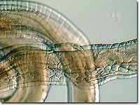 The human whipworm (Trichuris trichiura or Trichocephalus trichiuris), is a roundworm, which causes trichuriasis when it infects a human large intestine. The name whipworm refers to the shape of the worm; they look like whips with wider "handles" at the posterior end.