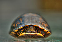 Turtles are reptiles of the Order Testudines (all living turtles belong to the crown group Chelonia), most of whose body is shielded by a special bony or cartilaginous shell developed from their ribs. The Order Testudines includes both extant (living) and extinct species. The earliest known turtles date from 215 million years ago, making turtles one of the oldest reptile groups and a more ancient group than lizards and snakes. About 300 species are alive today, and some are highly endangered.