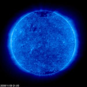 In astronomy, very hot objects preferentially emit UV radiation (see Wien's law). Because the ozone layer blocks many UV frequencies from reaching telescopes on the surface of the Earth, most UV observations are made from space. (See UV astronomy, space observatory.)