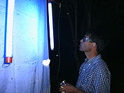 Many insects use the ultraviolet wavelength emissions from celestial objects as references for flight navigation. A local ultraviolet emissor will normally disrupt the navigation process and will eventually attract the flying insect.