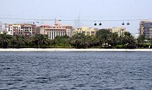 The UAE coast stretches for more than 650 kilometers along the southern shore of the Persian Gulf. Most of the coast consists of salt pans that extend far inland. The largest natural harbour is at Dubai, although other ports have been dredged at Abu Dhabi, Sharjah, and elsewhere. Numerous islands are found in the Persian Gulf, and the ownership of some of them has been the subject of international disputes with both Iran and Qatar. The smaller islands, as well as many coral reefs and shifting sandbars, are a menace to navigation. Strong tides and occasional windstorms further complicate ship movements near the shore. The UAE also has a stretch of the Al Bāţinah coast of the Gulf of Oman, although the Musandam Peninsula, the very tip of Arabia by the Strait of Hormuz is an enclave of Oman within the UAE.