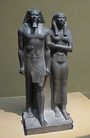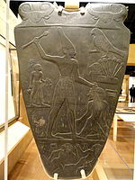 The monumental sculpture of Ancient Egypt is world-famous, but refined and delicate small works exist in much greater numbers. The Egyptians used the distinctive technique of sunk relief, which is well suited to very bright sunlight. The main figures in reliefs adhere to the same figure convention as in painting, with parted legs (where not seated) and head shown from the side, but the torso from the front, and a standard set of proportions making up the figure, using 18 "fists" to go from the ground to the hair-line on the forehead. This appears as early as the Narmer Palette from Dynasty I, but there as elsewhere the convention is not used for minor figures shown engaged in some activity, such as the captives and corpses. Other conventions make statues of males darker than females ones. Very conventionalized portrait statues appear from as early as Dynasty II, before 2,780 BCE, and with the exception of the art of the Amarna period of Ahkenaten, and some other periods such as Dynasty XII, the idealized features of rulers, like other Egyptian artistic conventions, changed little until after the Greek conquest.