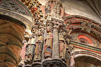 The arrival of European Catholic culture readily adapted local skills to the prevailing Baroque style, producing enormously elaborate retablos and other mostly church sculptures in a variety of hybrid styles. The most famous of such examples in Canada is the altar area of the Notre Dame Basilica in Montreal, Quebec, which was carved by peasant habitant labourers. Later, artists trained in the Western academic tradition followed European styles until in the late 19th century they began to draw again on indigenous influences, notably in the Mexican baroque grotesque style known as Churrigueresque. Aboriginal peoples also adapted church sculpture in variations on Carpenter Gothic; one famous example is the Church of the Holy Cross in Skookumchuck Hot Springs, British Columbia.