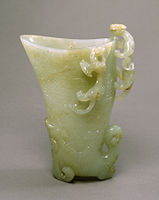One form of sculpture found in many prehistoric cultures around the world is specially enlarged versions of ordinary tools, weapons or vessels created in impractical precious materials, for either some form of ceremonial use or display or as offerings. Jade or other types of greenstone were used in China, Olmec Mexico, and Neolithic Europe, and in early Mesopotamia large pottery shapes were produced in stone. Bronze was used in Europe and China for large axes and blades, like the Oxborough Dirk.