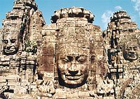 The sculpture of the region tends to be characterised by a high degree of ornament, as seen in the great monuments of Hindu and Buddhist Khmer sculpture (9th to 13th centuries) at Ankor Wat and elsewhere, the enormous 9th century Buddhist complex at Borobudur in Java, and the Hindu monuments of Bali. Both of these include many reliefs as well as figures in the round; Borobudur has 2,672 relief panels, 504 Buddha statues, many semi-concealed in openwork stupas, and many large guardian figures. In Thailand and Laos, sculpture was mainly of Buddha images, often gilded, both large for temples and monasteries, and small figurines for private homes. Traditional sculpture in Myanmar emerged before the Bagan period. As elsewhere in the region, most of the wood sculptures of the Bagan and Ava periods have been lost. In later periods Chinese influence predominated in Vietnam, Laos and Cambodia, and more wooden sculpture survives from across the region.