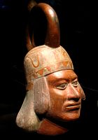 Moche portrait vessel with stirrup spout, Peru, 100 BCE-700 CE
