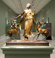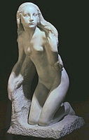 Modern classicism contrasted in many ways with the classical sculpture of the 19th century which was characterized by commitments to naturalism ( Antoine-Louis Barye)—the melodramatic ( François Rude) sentimentality ( Jean Baptiste Carpeaux)-- or a kind of stately grandiosity ( Lord Leighton). Several different directions in the classical tradition were taken as the century turned, but the study of the live model and the post-Renaissance tradition was still fundamental to them. Auguste Rodin was the most renowned European sculptor of the early 20th century. He is often considered a sculptural Impressionist, as are his students including Camille Claudel, and Hugo Rheinhold, attempting to model of a fleeting moment of ordinary life. Modern classicism showed a lesser interest in naturalism and a greater interest in formal stylization. Greater attention was paid to the rhythms of volumes and spaces—as well as greater attention to the contrasting qualities of surface (open, closed, planar, broken etc.) while less attention was paid to story-telling and convincing details of anatomy or costume. Greater attention was given to psychological effect than to physical realism, and influences from earlier styles worldwide were used.