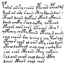 The text seems to be more repetitive than typical European languages; there are instances where the same common word appears up to three times in a row. Words that differ by only one letter also repeat with unusual frequency, causing single-substitution alphabet decipherings to yield babble-like text. Elizebeth Friedman in 1962 described such attempts as "doomed to utter frustration".