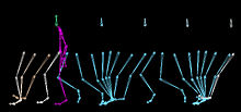 Walking (also known as ambulation) is one of the main gaits of locomotion among legged animals, and is typically slower than running and other gaits. Walking is defined by an 'inverted pendulum' gait in which the body vaults over the stiff limb or limbs with each step. This applies regardless of the number of limbs - even arthropods with six, eight or more limbs.