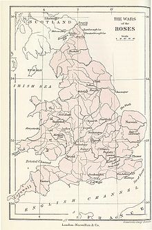 ![]() Painting by Henry Payne in 1908 of the historically apocryphal scene in the Temple Garden, from Shakespeare's play Henry VI, Part 1, where supporters of the rival factions pick either red or white roses |