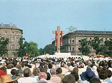 John Paul II's visits to his native country in 1979 and 1983 brought support to the budding solidarity movement and encouraged the growing anti-communist fervor there. In 1979, less than a year after becoming pope, John Paul celebrated Mass in Victory Square in Warsaw and ended his sermon with a call to "renew the face" of Poland: Let Thy Spirit descend! Let Thy Spirit descend and renew the face of the land! This land! These words were very meaningful for the Polish citizens who understood them as the incentive for the democratic changes.