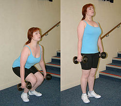 Weight training can be one of the safest forms of exercise, especially when the movements are slow, controlled, and carefully defined. However, as with any form of exercise, improper execution can result in injury. When the exercise becomes difficult towards the end of a set, there is a temptation to cheat, i.e. to use poor form to recruit other muscle groups to assist the effort. This may shift the effort to weaker muscles that cannot handle the weight. For example, the squat and the deadlift are used to exercise the largest muscles in the body—the leg and buttock muscles—so they require substantial weight. Beginners are tempted to round their back while performing these exercises. This causes the weaker lower back muscles to support much of the weight, which can result in serious lower back injuries. To avoid such problems, weight training exercises must be performed correctly. Hence the saying: "train, don't strain".