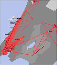 In the east is the Miramar Peninsula, connected to the rest of the city by a low-lying isthmus at Rongotai, the site of Wellington International Airport. The narrow entrance to Wellington is directly to the east of the Miramar Peninsula, and contains the dangerous shallows of Barrett Reef, where many ships have been wrecked (most famously the inter-island ferry Wahine in 1968).