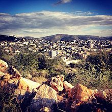 The most densely populated part of the region is a mountainous spine, running north-south, where the cities of Jerusalem, Nablus, Ramallah, al-Bireh, Jenin, Bethlehem, Hebron and Yattah are located as well as the Israeli settlements of Ariel, Ma'ale Adumim and Betar Illit. Ramallah, although relatively mid in population compared to other major cities as Hebron, Nablus and Jenin, serves as an economic and political centre for the Palestinians. Near Ramallah the new city of Rawabi is under construction. Jenin in the extreme north and is the capital of north of the West Bank and is on the southern edge of the Jezreel Valley. Modi'in Illit, Qalqilyah and Tulkarm are in the low foothills adjacent to the Israeli Coastal Plain, and Jericho and Tubas are situated in the Jordan Valley, north of the Dead Sea.