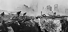 By mid-November, the Germans had nearly taken Stalingrad in bitter street fighting when the Soviets began their second winter counter-offensive, starting with an encirclement of German forces at Stalingrad and an assault on the Rzhev salient near Moscow, though the latter failed disastrously. By early February 1943, the German Army had taken tremendous losses; German troops at Stalingrad had been forced to surrender and the front-line had been pushed back beyond its position before the summer offensive. In mid-February, after the Soviet push had tapered off, the Germans launched another attack on Kharkiv, creating a salient in their front line around the Russian city of Kursk.