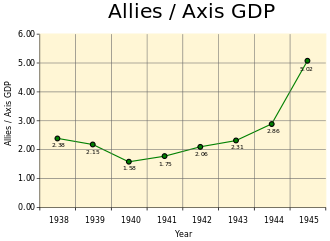 In Europe, before the outbreak of the war, the Allies had significant advantages in both population and economics. In 1938, the Western Allies (United Kingdom, France, Poland and British Dominions) had a 30 percent larger population and a 30 percent higher gross domestic product than the European Axis (Germany and Italy); if colonies are included, it then gives the Allies more than a 5:1 advantage in population and nearly 2:1 advantage in GDP. In Asia at the same time, China had roughly six times the population of Japan, but only an 89 percent higher GDP; this is reduced to three times the population and only a 38 percent higher GDP if Japanese colonies are included.