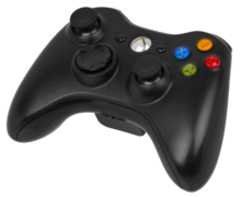 Released in 2001, the Xbox control pad was the first controller made for the original Xbox. The Xbox controller features two analog sticks, a pressure sensitive directional pad, two analog triggers, a Back button, a Start button, two accessory slots and six 8-bit analog action buttons (A/Green, B/Red, X/Blue, Y/Yellow, and Black and White buttons). The standard Xbox controller (also nicknamed the "Fatty" or the "Duke") was originally the controller bundled with Xbox systems for all territories except Japan.