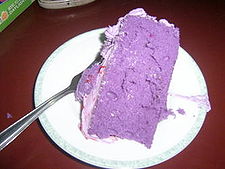 In the Philippines, the purple ube variety of yam (Dioscorea alata, also known in India as ratalu or violet yam) is eaten as a sweetened dessert called "ube halaya", and is also used as an ingredient in another Filipino dessert, halo-halo.