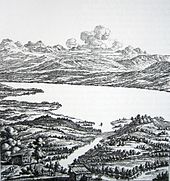 Zurich is situated at 408 m (1,339 ft) above sea level on the lower (northern) end of Lake Zurich (Zürichsee) about 30 kilometres (19 mi) north of the Alps, nestling between the wooded hills on the west and east side. The Old Town stretches on both sides of the Limmat River, which flows from the lake, running northwards at first and then gradually turning into a curve to the west. The geographic (and historic) centre of the city is the Lindenhof, a small natural hill on the west bank of the Limmat, about 700 m (2,300 ft) north of where the river issues from Lake Zurich. Today the incorporated city stretches somewhat beyond the natural hydrographic confines of the hills and includes some districts to the northeast in the Glatt Valley (German: Glattal) and to the north in the Limmat Valley (German: Limmattal). The boundaries of the older city are easy to recognize by the Schanzengraben canal. This artificial watercourses has been used for the construction of the third fortress in the 17th and 18th centuries.