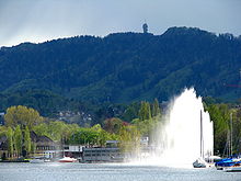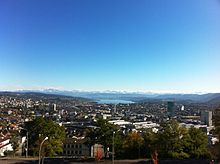 On its west side the Limmat valley is flanked by the wooded heights of the Albis chain, which runs along the western border. The Üetliberg is, with 869 m (2,851 ft) above sea level, the highest elevation of the surrounding area. Its summit can be reached easily by the Uetlibergbahn. From the platform of the observation tower on the summit, an impressive panorama of the city, the lake and the Alps can be seen.